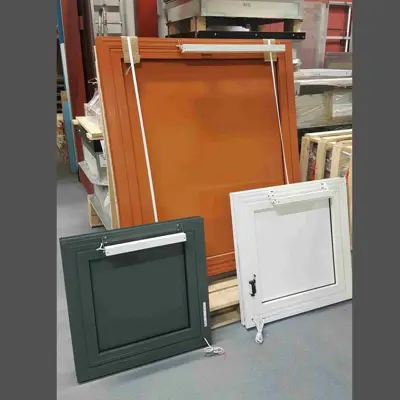 För en mer automatiserad lösning har vi en fasadlucka med 24V Elmotor för brandventilation.Denna variant ger bekväm och smidig öppning & stängning via en manöverknapp, vilket gör den idealisk för större anläggningar där luckan sitter på högre höjd eller där frekvent användning kräver en mer effektiv hantering. Kan även användas för komfortventilation vid behov.