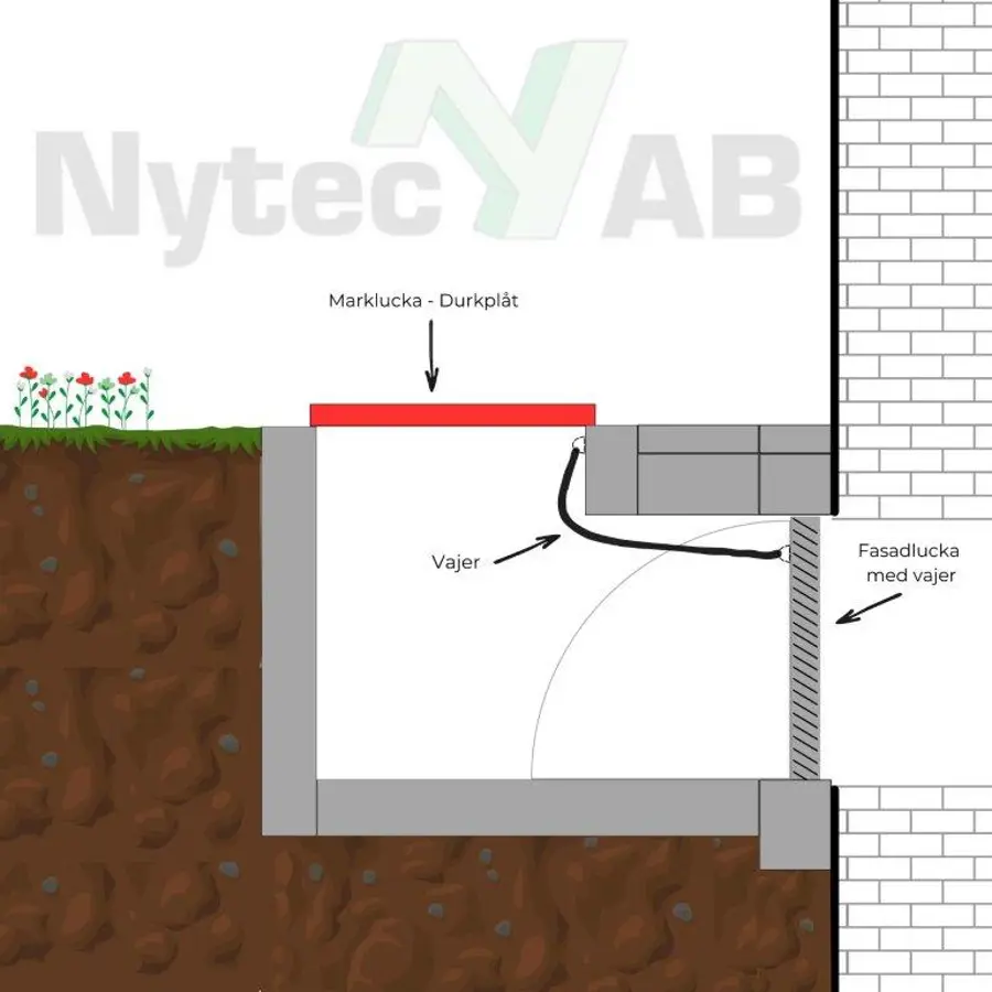 Material: Fasadlucka för schakt med vajer öppning