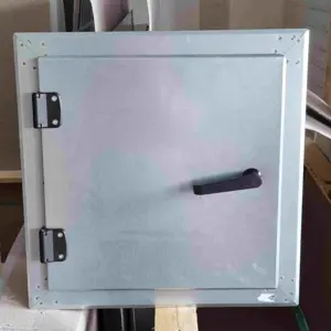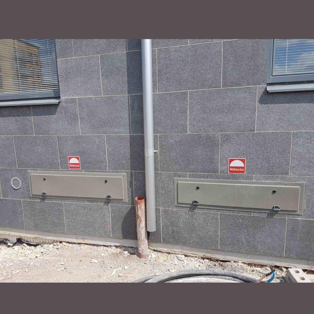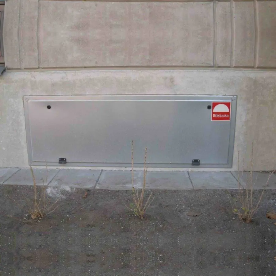Fasad luckan består av en 45 mm bred fästram, som monteras mot kanalen med plåtskruv eller popnit, samt en isolerad lucka med låsvred och gummitätning. Luckan är upphängd i gångjärn, försedd med låsvred trekantsnyckel och handtag om önskas. Från storlek 400×400 har luckan också ett hantag på insidan. Luckan levereras med 50 mm mineralull a 100 kg/m3. Höger eller vänsterhängd lucka eller även underkantshängd eller överkantshängd går att få. Luckan kan levereras med öppning inåt eller utåt.
