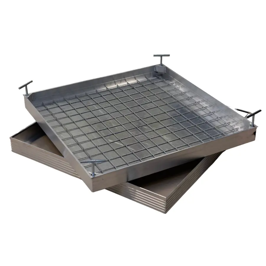 Marklucka Ifyllningsbar 400kN är en marklucka av aluminium som bekläs med valfri beläggning, Luckan är 400kN och godkänd enligt belastningsklasse EN124 eller klass D och tillämpas för snabb och tung trafik.Valfri Storlek.Mark- Golvluckor