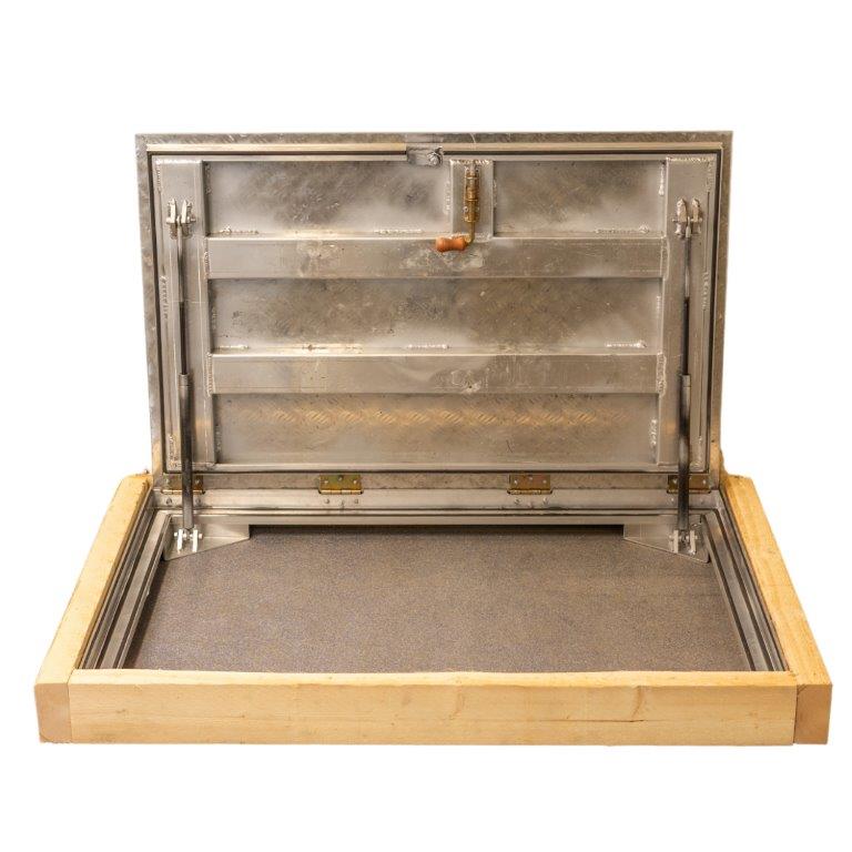 MarkVent Nedfälld lucka är en durkplåtslucka av aluminium för rökgasevakuering som ligger i nivå med marken, luckan öppnas med lyftnycklar och kan monteras inomhus eller utomhus. Lucka kan tillverkas med gångjärn och gastrycksfjäder för invändig öppning. Valfri storlek. Mark- och golvluckor